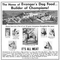 Dr. Fred Evanger begins canning meat-based recipes commercially, crafted for his Champion Great Danes—at a time when most dogs ate table scraps and biscuits.
